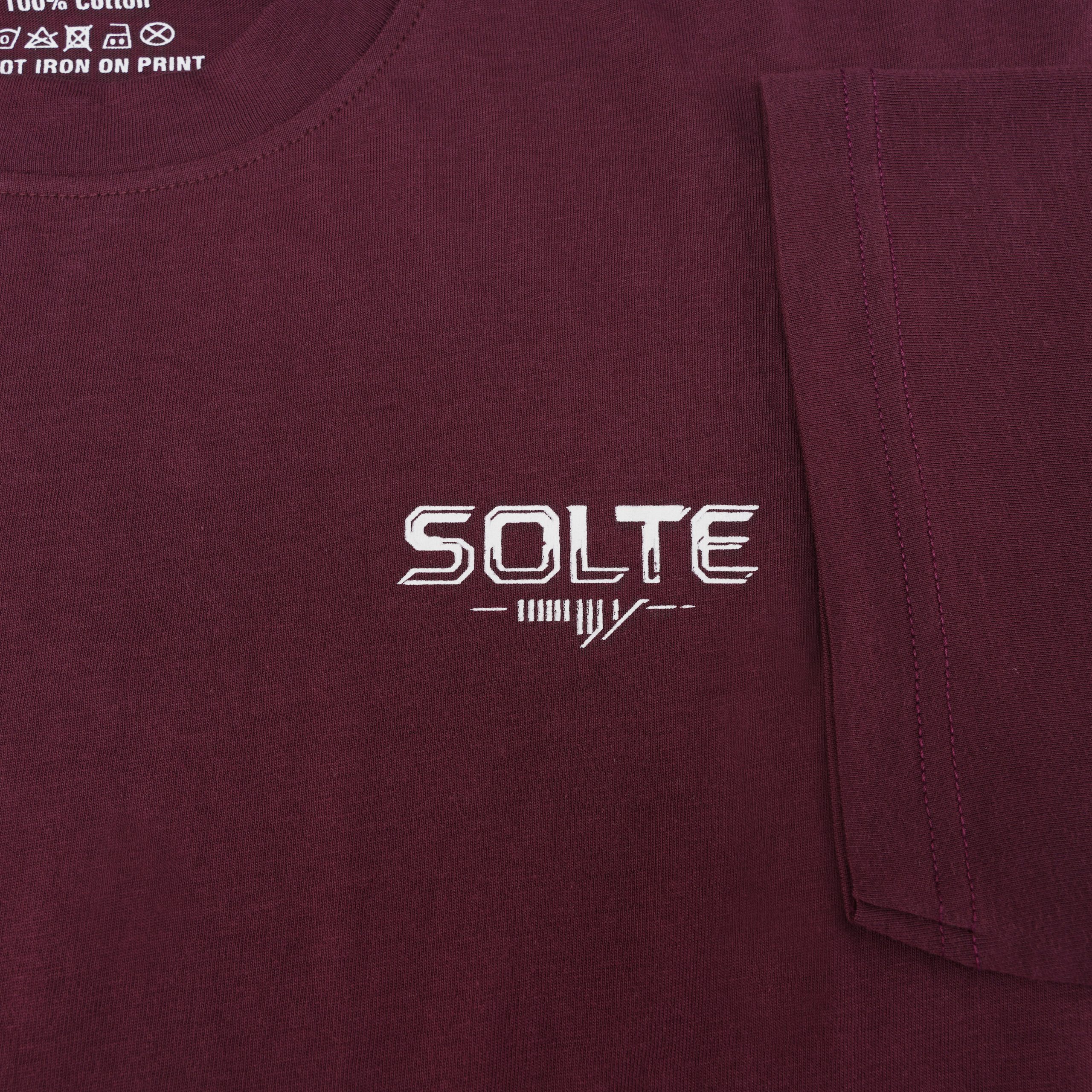 Premium Fabric, fearless design. Maroon SOLTE tee – when being different feels this good.
